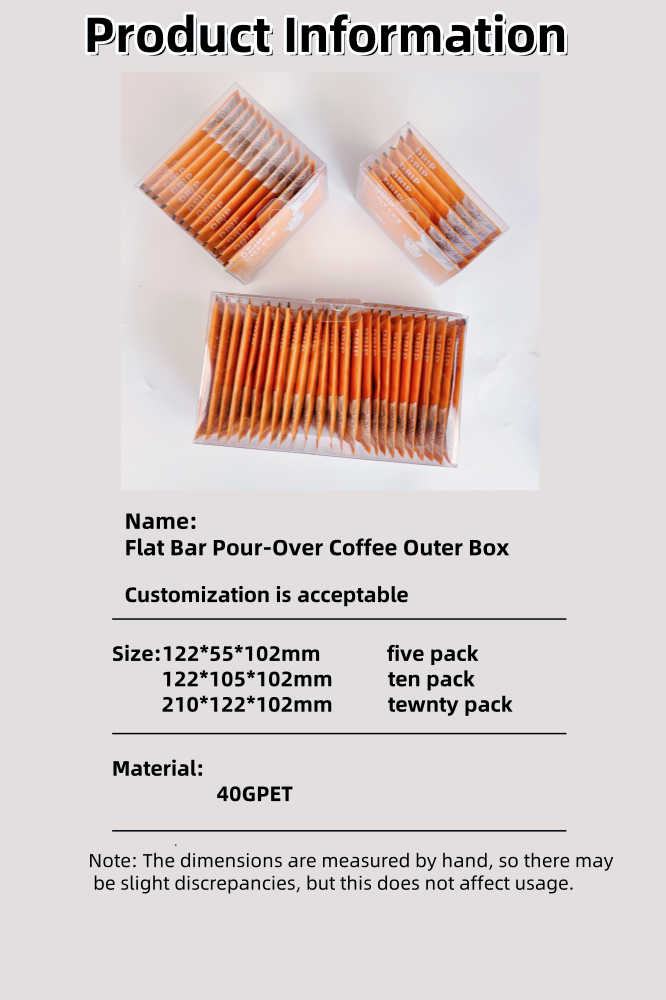 కాఫీ బాహ్య సంచులను అనుకూలీకరించడం కస్టమర్ల కోసం, పారదర్శక బాహ్య పెట్టెను ఎంచుకోవడం మీ అనుకూలీకరించిన కాఫీ బాహ్య సంచులను స్పష్టంగా చూడటానికి మిమ్మల్ని అనుమతిస్తుంది.